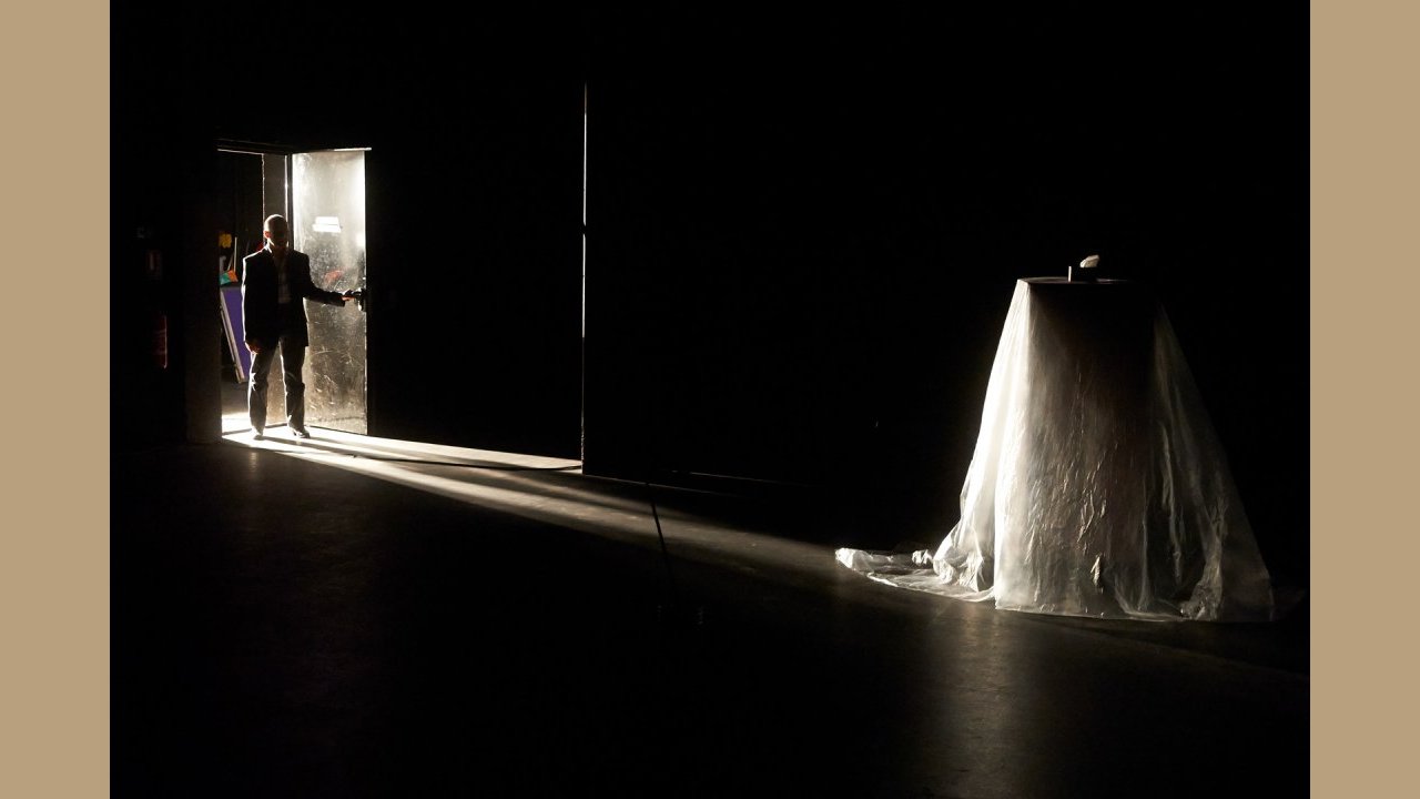 Domino est une créature de théâtre. Son nom est un nom de code qui vibre avec son apparition. Plus qu’un personnage, Domino est un poème. Il est ici pour parler à son amour défunt. Si un poème parle à un mort, le mort peut écouter le poème. Son adresse ouvre les limites. Domino délivre son message. Quand nous le regardons, il est de chair. Il parle notre langue, chante, crie, pleure, danse, sue et s’évanouit dans la nuit. C’est sa nature, comme un message retrouvé dans une bouteille à la mer, comme le souvenir du visage d’une arrière grand-mère, comme le héros d’un film qui n’a pas été tourné, une impression lointaine mais tenace. Les spectateurs savent cela et viennent assister à une cérémonie. Quelque chose s’approche petit à petit du lointain pour parler de la nature du coeur de l’homme.